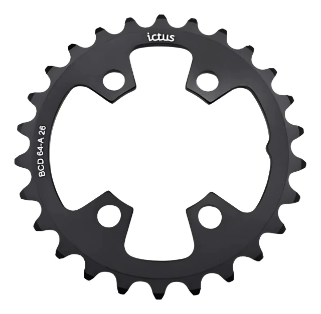 A Assimétrica BCD 64 26T é uma coroa única desenvolvida pela Ictus em alumínio 7075. As coroas únicas chegaram para revolucionar o mundo do Speed, oferecendo um desempenho mais linear para a transmissão da bike enquanto diminui o peso total do conjunto, aumentando a performance do ciclista. As coroas assimétricas ajudam os ciclistas com a pedalada menos redonda a retornar mais rapidamente ao ponto de tração ou a fazer isso sem desperdiçar tanta energia. Leveza, aerodinâmica, rigidez são alguns dos elementos buscados com a mistura de criatividade e ciência.